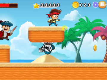 Jake vs Pirate Run is an exciting running game where you have to help a young sailor complete a challenging obstacle course while being pursuit by an evil pirate that wants to steal his treasure. While on the run dealing with all sort of deadly obstacles and dangerous enemies don't forget to look back and avoid being shoot by the pirate. Have fun and enjoy a truly impressive game while struggling to beat all 5 levels and complete the mission by helping Jake reach his ship and sail away from any threats.